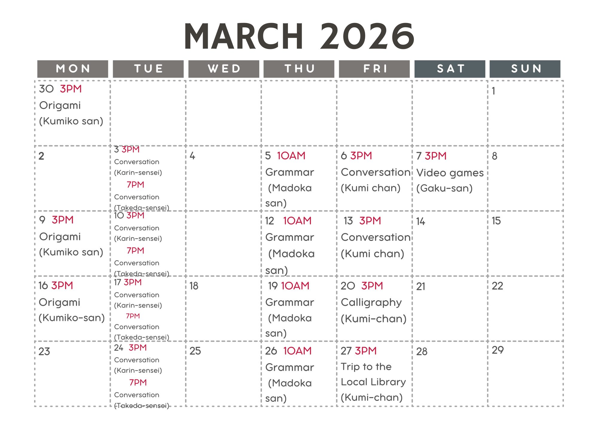 With a calm, creative atmosphere and a focus on presence and connection, Kumi-chan sensei sees every class as a small, once-in-a-lifetime encounter shaped by the people in the room. Her sessions are well suited for learners who enjoy a slower pace and a more experiential way of engaging with Japanese language and culture.